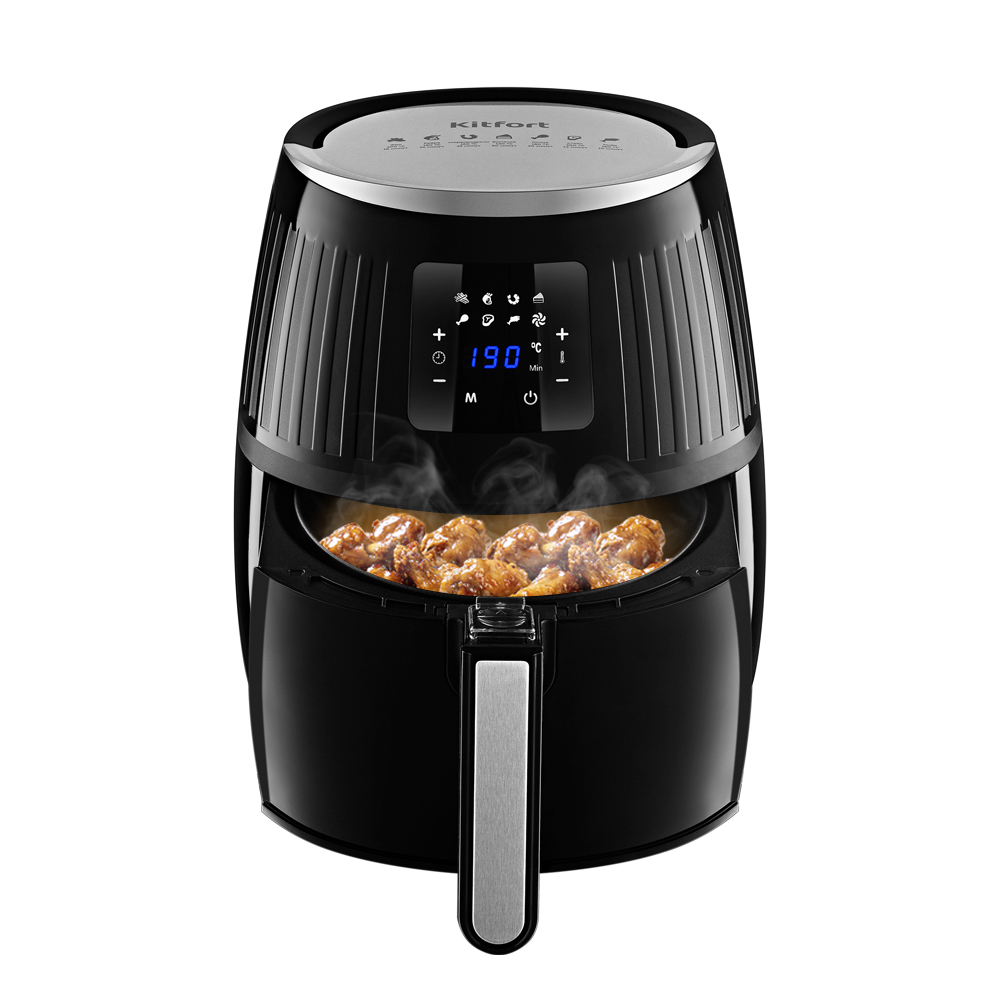 Аэрогриль Kitfort КТ-2226 может использоваться как аэрогриль, а также как аэрофритюрница и духовка и позволяет готовить большинство продуктов с минимальным количеством масла или вовсе без его добавления.