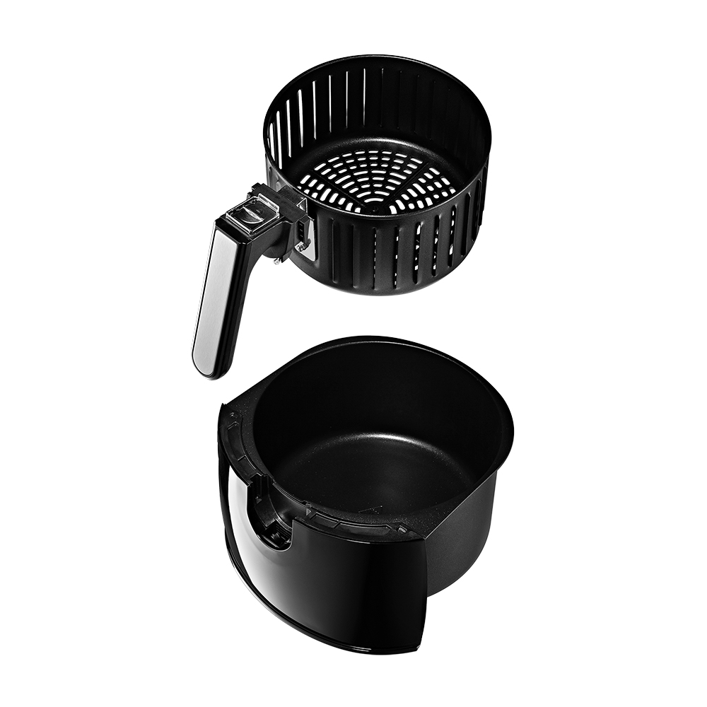 Продукты готовятся в специальной корзине, которая вставлена в поддон. Благодаря системе циркуляции горячего воздуха, продукты обжариваются равномерно со всех сторон, получаясь нежными внутри и с хрустящей корочкой снаружи.