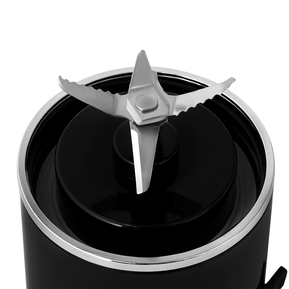 Лезвия выполнены из нержавеющей стали и отличаются своей силой, благодаря чему рубят продукты на высокой скорости вращения до 15000 оборотов в минуту, превращая продукты в пюре.