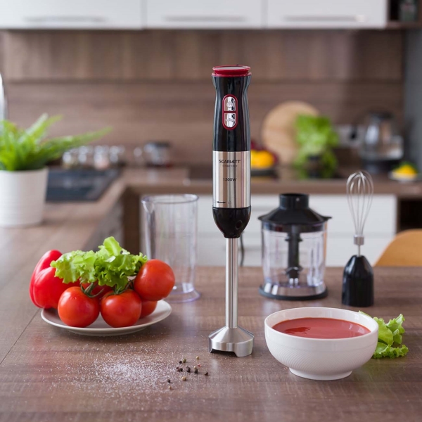 Погружной блендер SC-HB42F44 имеет высокую мощность 1500 Вт, позволяющую ему работать в 12 скоростных режимах. Прибор оснащен ножом-измельчителем, венчиком, мини-измельчителем и мерным стаканом и отлично справляется с выполнением множества задач на кухне: приготовление жидкого теста, омлета, крема для торта, нарезку ингредиентов для супов и салатов блендер выполнит за считанные секунды, а чтобы получить массу идеально воздушной консистенции без комочков активируйте режим Turbo на 15-30 секунд в конце приготовления. Блендер оснащен ножом DOUBLE FORCE с 4 длинными лезвиями, повышающими скорость и качество гомогенизации за счет ислючения образования пустых зон при работе прибора. Все погружные части и ножи блендера выполнены из долговечной нержавеющей стали марки STEEL PRO, которая отлично подходит для приготовления блюд любой температуры.