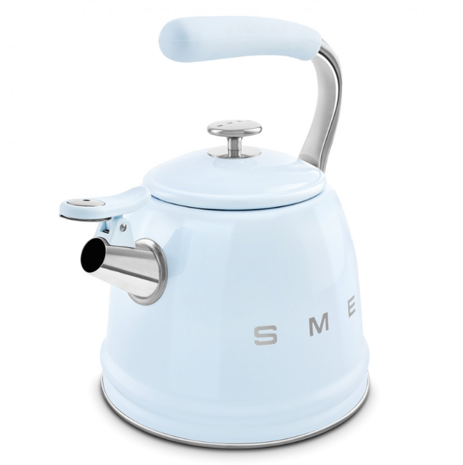 Чайник Smeg CKLW2001PB со свистком представляет собой уникальное сочетание стиля, функциональности и высокого качества. Выполненный в пастельно-голубом цвете, он добавит яркую нотку в любую кухню, а его дизайн в стиле 50-х годов привнесет в ваш дом нотку ретро. Корпус изготовлен из нержавеющей стали, что гарантирует долговечность и надежность.
