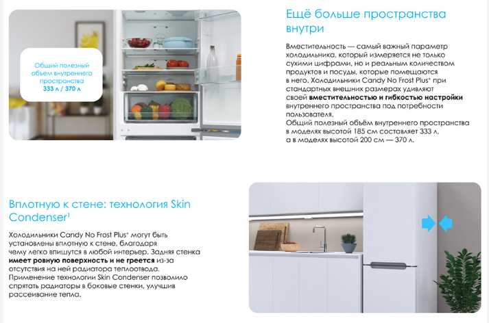 | Объем холодильной камеры (общий/полезный), л | 264 |