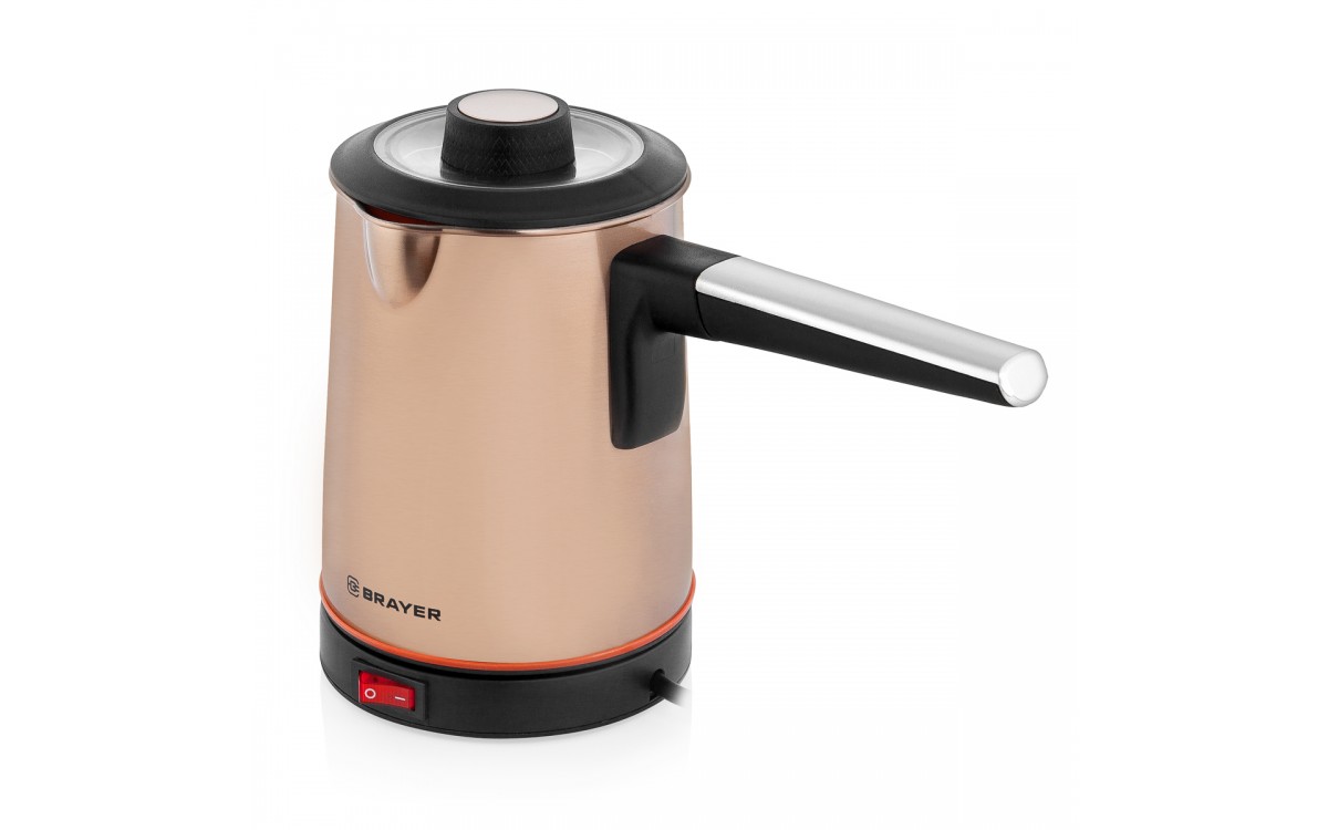 Электрическая кофеварка-турка от BRAYER BR-1141 - имеет довольно большой объём в 500 мл, что позволит Вам сварить утренний кофе для всей семьи. Металлический корпус выглядит стильно и современно, поэтому с лёгкостью впишется в интерьер любой кухни или офиса. Кофеварка автоматически выключится при закипании, перегреве или отсутствии воды.1