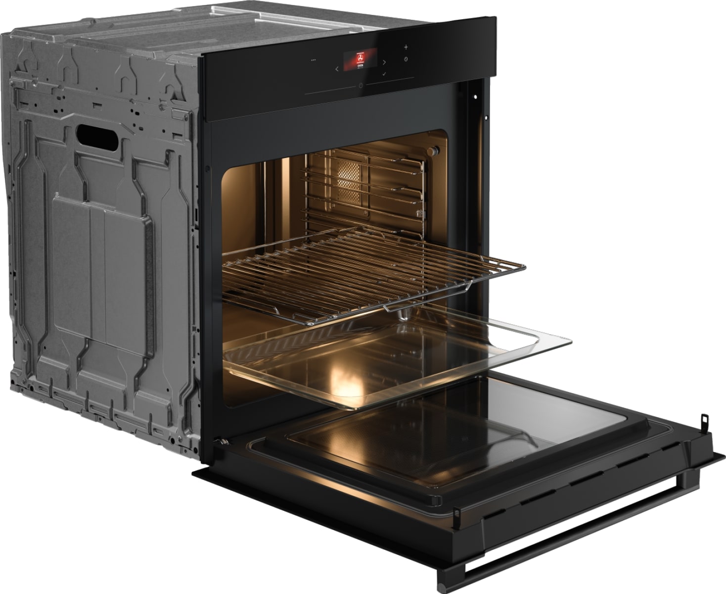 Общие данные: Габариты: 59.5x59.35x56.4 см Габариты ниши для встраивания: 59x56.4x55 см Объем духовки: 68 л Гриль: есть Конвекция: есть Освещение духовки: Двойное галогеновое Количество режимов работы: 15 Самоочистка: паровая Принадлежности: 1 решетка / 1 стеклянный противень / Термозонд