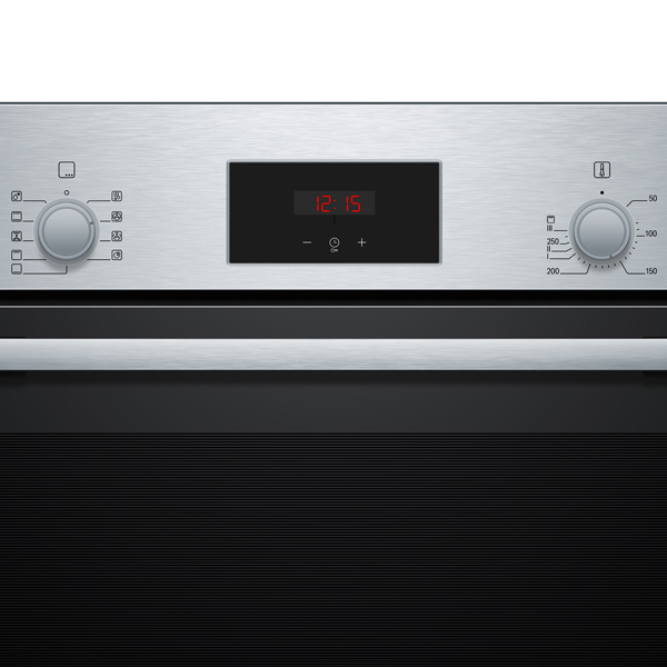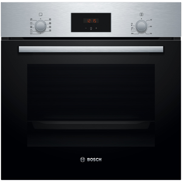 Духовой шкаф Bosch HBF134ER0R представлен в цвете «нержавеющая сталь». Модель комплектуется LCD-дисплеем и поворотными переключателями для удобной и точной настройки работы программы. Благодаря функции «Быстрый разогрев», нужная для приготовления температура достигается до старта выбранного режима, что увеличивает комфорт эксплуатации. Блокировка управления от детей и система охлаждения гарантируют безопасность использования устройства.