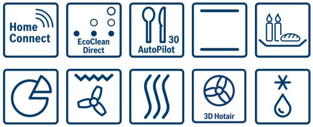 Дополнительно | Serie 6. Home Connect. AutoPilot 30 автоматические программы с установкой веса продукта. Функция Шабат позволяет поддерживать блюдо в готовом состоянии до 76 часов. Дверца духовки с амортизатором SoftClose обеспечивает плавное открытие и закрытие дверцы. |