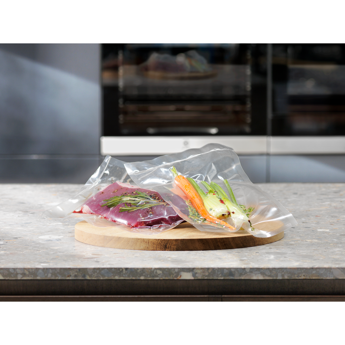 Получите доступ в мир безупречных результатов, начав готовить методом сувид дома. Ключевое условие для приготовления блюд сувид — точный контроль температуры. Наш духовой шкаф поддерживает уровень заданной температуры с точностью до 1 градуса. Насыщенный аромат блюда надежно удерживается за счет вакуумной упаковки, а пар сохраняет вкус и питательные вещества.
