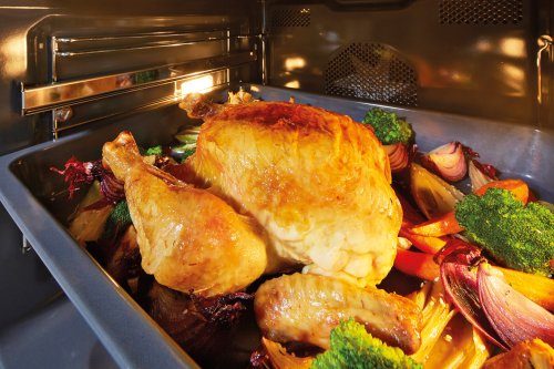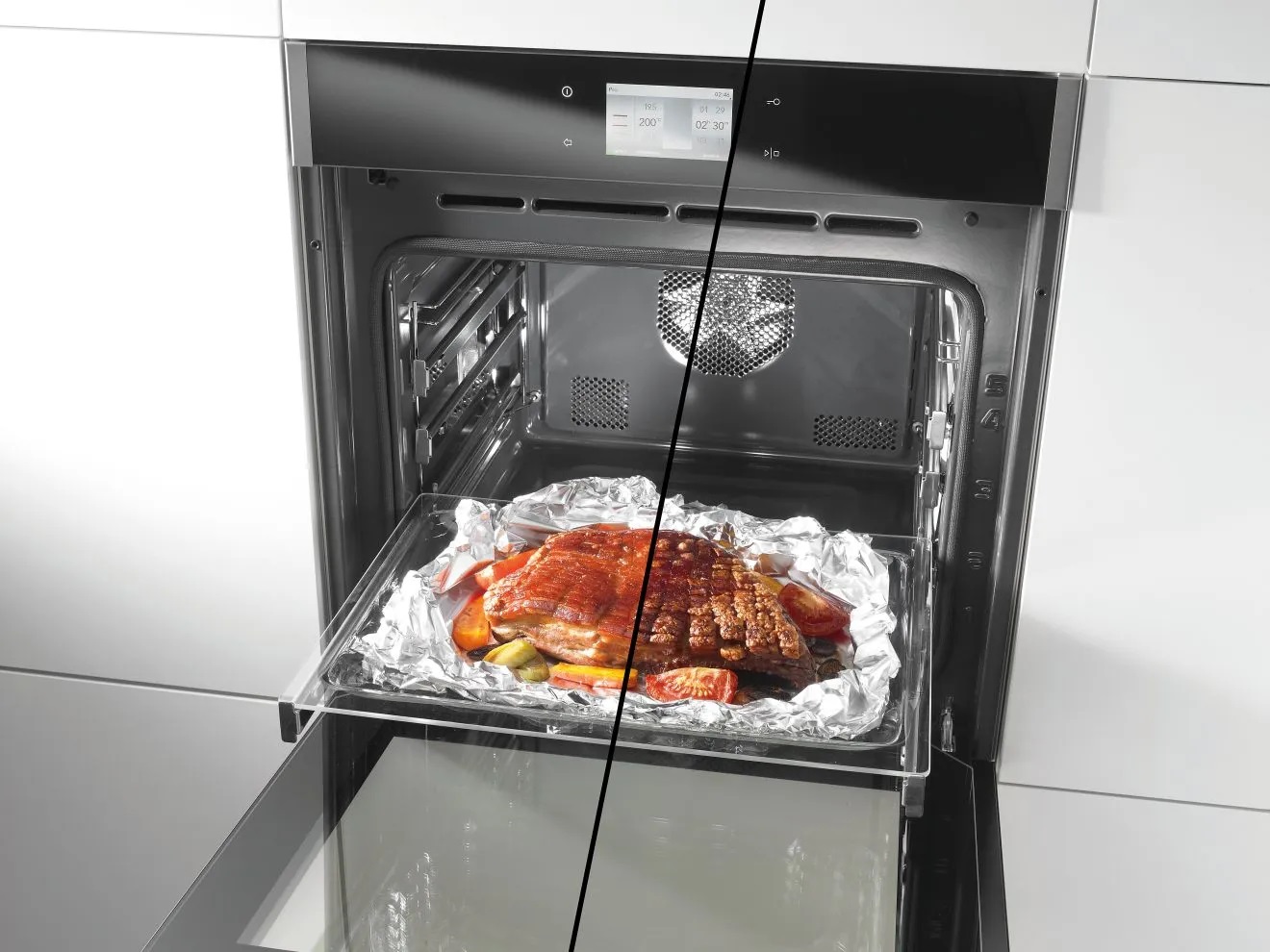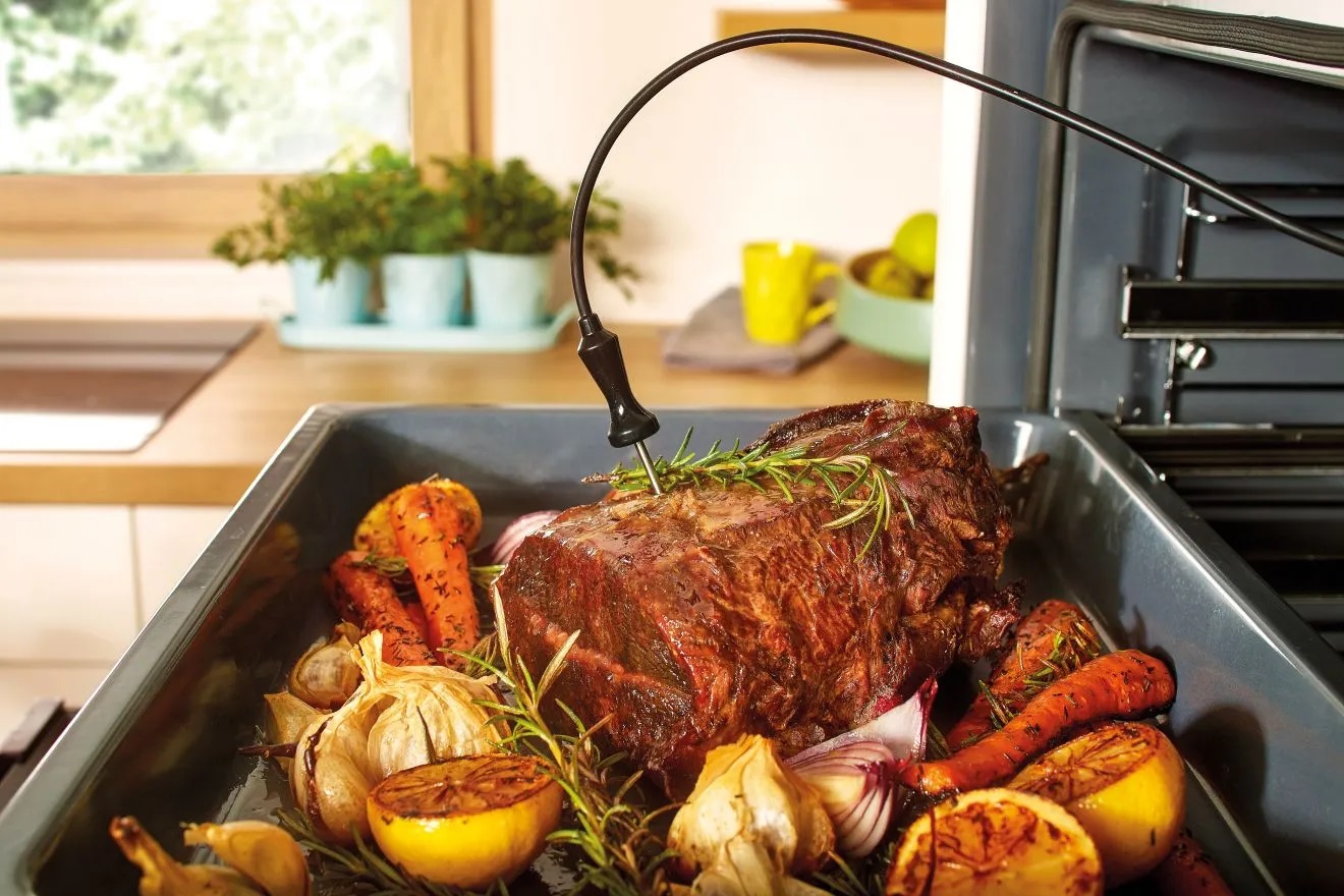 Комплектация | Глубокий эмалированный противень Мелкий эмалированный противень Перфорированный паровой противень Решетка 1 шт. Термозонд для мяса |