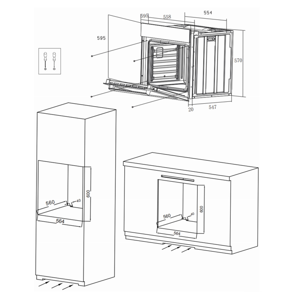 Ширина встраивания до 60 см