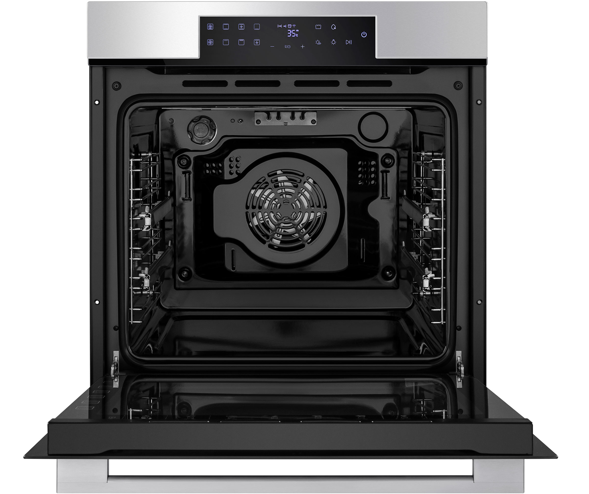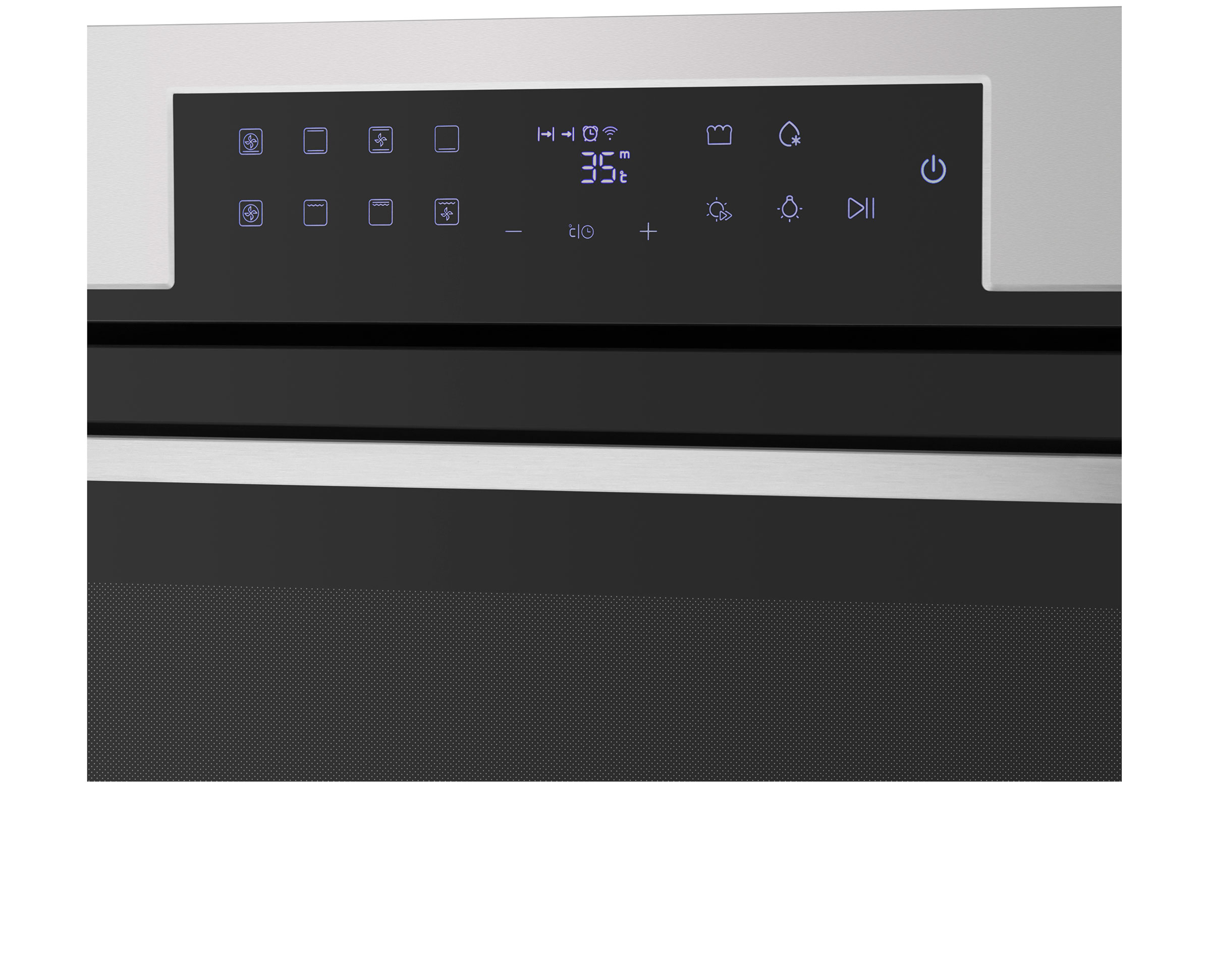 Сенсорный программатор FULL TOUCH с дисплеем COLD WHITE интуитивно понятен и удобен в использовании. Позволяет выбирать режимы нагрева, температуру, длительность готовки, устанавливать таймер, включать функцию быстрого нагрева и блокировать панель управления. В данной модели поддерживается 11 режимов работы: традиционный нагрев, пицца, разморозка, конвекционный нагрев, нижний нагрев, горячий воздух, малый гриль, большой гриль, брожение, объемный турбогриль, внутреннее освещение.