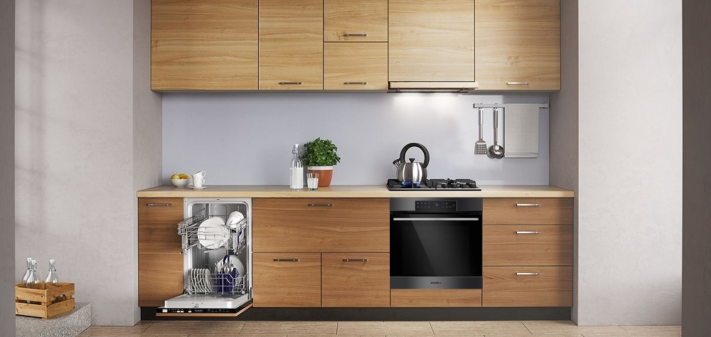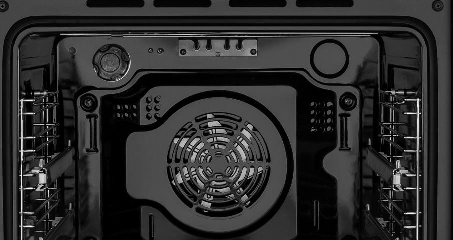 Дверца с доводчиком состоит из трех стекол, что создает холодный фронт и делает процесс приготовления безопасным, исключая возможность ожога при касании. Тонировка на внутреннем стекле дверцы создает визуальный эффект непрозрачности фасада: при выключенном освещении не видно посуду, находящуюся внутри духовой камеры, а при включенном освещении можно в деталях рассмотреть весь процесс готовки.