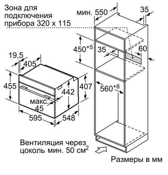 Размеры ниши ВхШхГ, см | 45-45.5х56-56.8х55 |