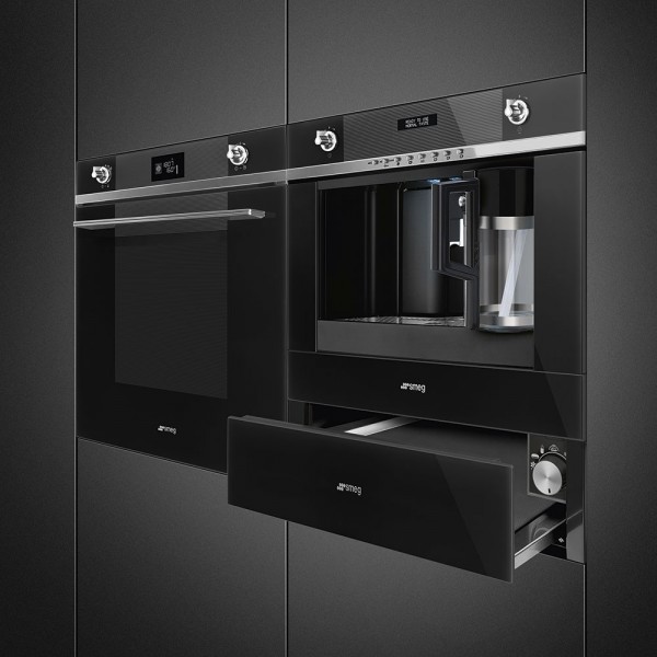 Духовой шкаф Smeg SF6101VN из серии Linea представлена в изящном цвете «черное стекло». Конструкция предусматривает наличие LED-дисплея с фронтальной стороны, который оповещает пользователя о ходе работы. Поворотные переключатели из поликарбоната обеспечивают легкое управление устройством. Блокировка управления от детей и 3 стекла дверцы обеспечивают безопасное использование прибора.Внутри расположена галогенная лампа, которая равномерно освещает камеру и не требует замены. Наличие ECO-функции с пониженным потреблением электроэнергии — всего 1,8 кВт.