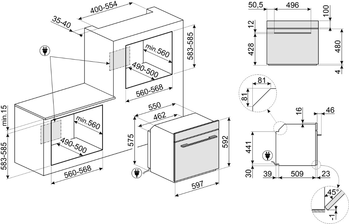 | Размеры ниши ВхШхГ, см | 58,5х56,4х56 |