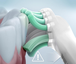 Встроенный датчик давления автоматически распознает давление на щетку, предупреждает пользователя и автоматически снижает интенсивность вибраций зубной щетки для защиты десен. Зубная щетка издаст пульсирующий звуковой сигнал, если вам необходимо не так сильно давить на щетку. 7 из 10 пользователей оценили эффективность этой функции в формировании правильной техники чистки зубов.