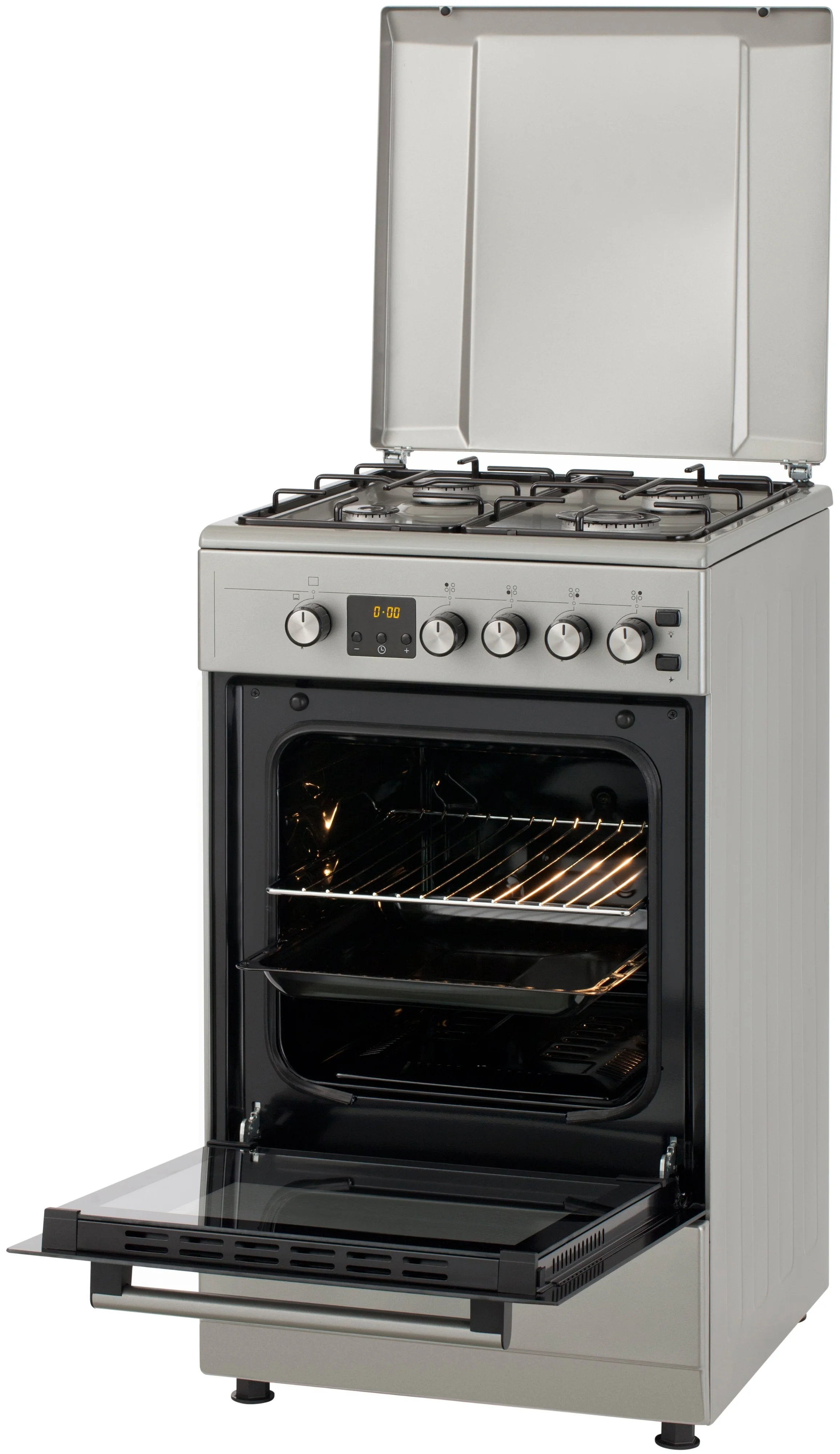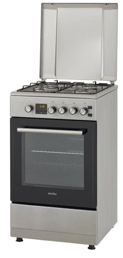 Газовая плита Simfer F55GS42015 серебристо-стального цвета – практичная и простая в использовании модель, которая станет хорошим подспорьем на любой кухне. Конструкция предусматривает наличие 4 конфорок и духовки объемом 45 л.