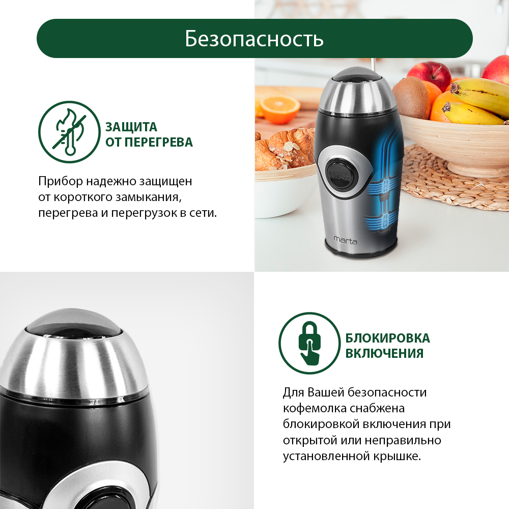 Кофемолка MARTA MT-2169 черный жемчуг