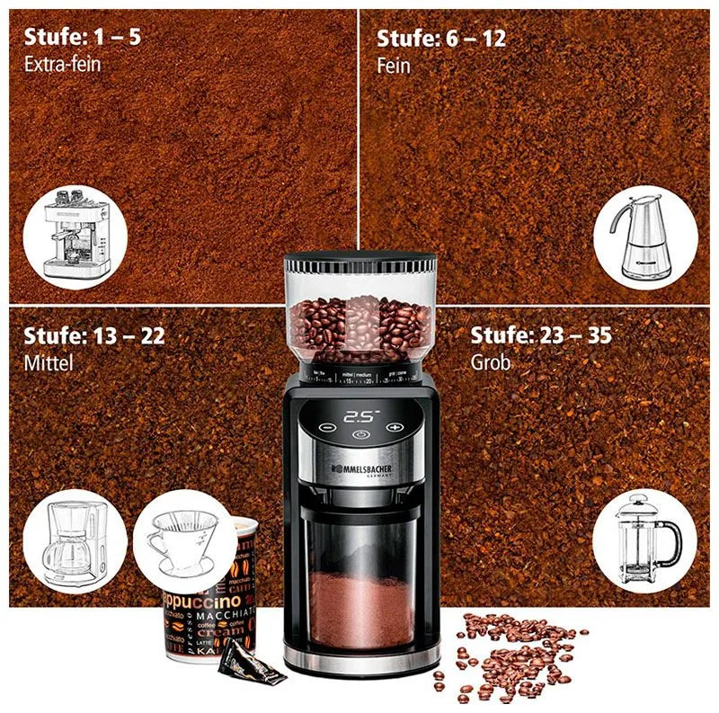Регулировка степени помола (35 шагов), от мелкого (эспрессо) до грубого (френч-пресс)