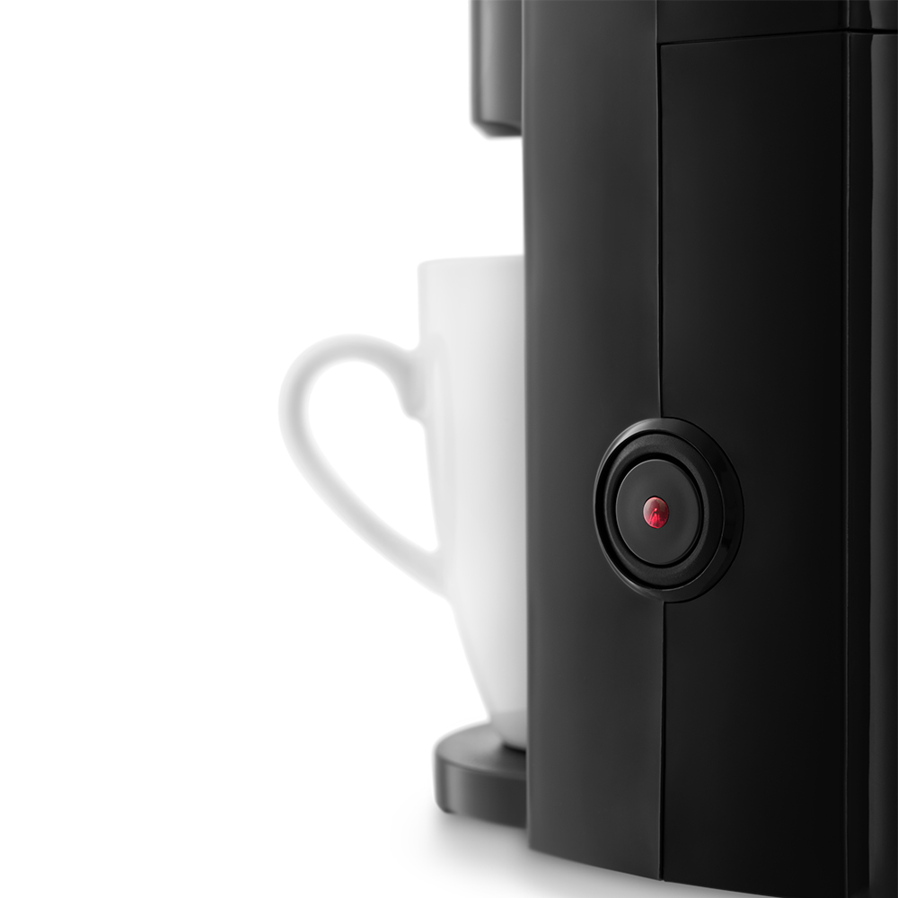 Кофеварка управляется всего одной кнопкой, расположенной на корпусе.