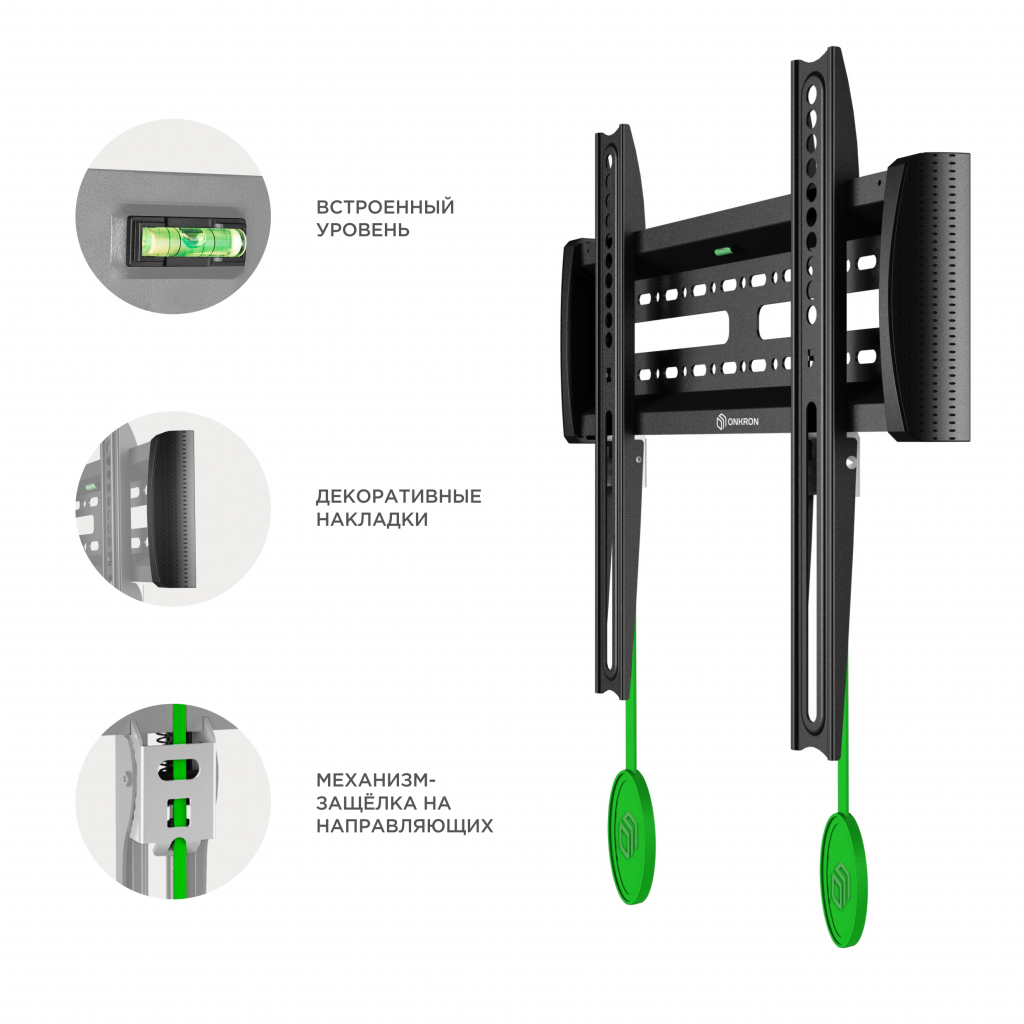 Настенный кронштейн ONKRON NN14 предназначен для телевизоров с диагональю от 32 до 65 дюймов. Максимальный выдерживаемый вес составляет 56,8 кг, что делает кронштейн подходящим для достаточно больших digital-панелей. Крепление универсально за счет множества предусмотренных производителем размеров VESA – от 75x75 мм до 400x400 мм.