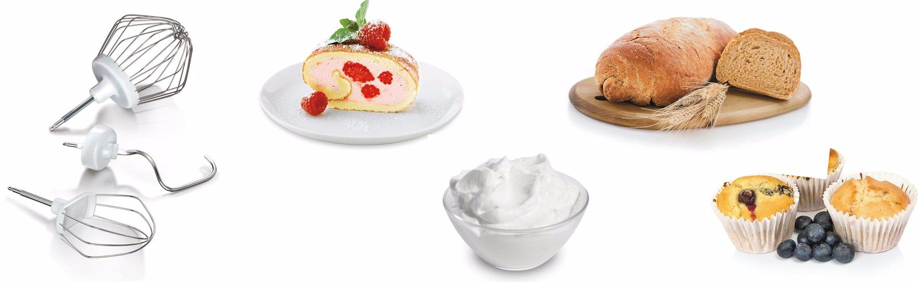| Насадки | Крюк для теста, венчик для жидкого теста, венчик для взбивания |