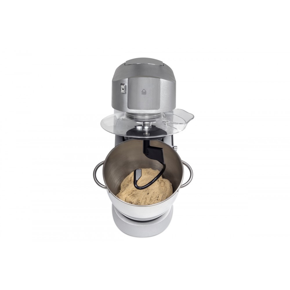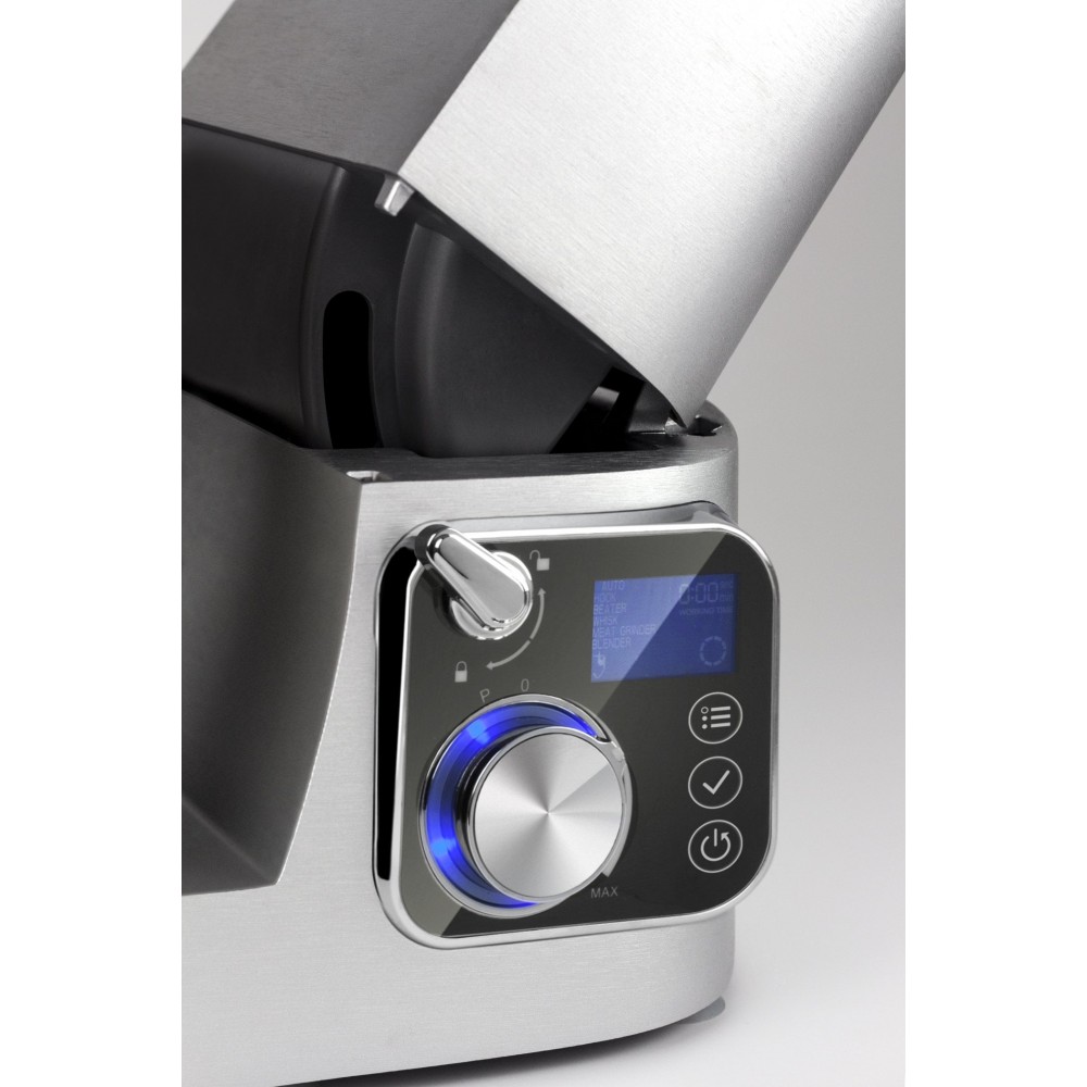 Оборудование предназначено для взбивания продуктов до необходимой консистенции, замешивания теста при помощи специального крюка (для хлеба, пирожков), измельчения твердых продуктов (лед, орех) за счет импульсного режима. Защита от брызг обеспечивается при помощи прозрачной крышки. Есть место для подсоединения мясорубки.
