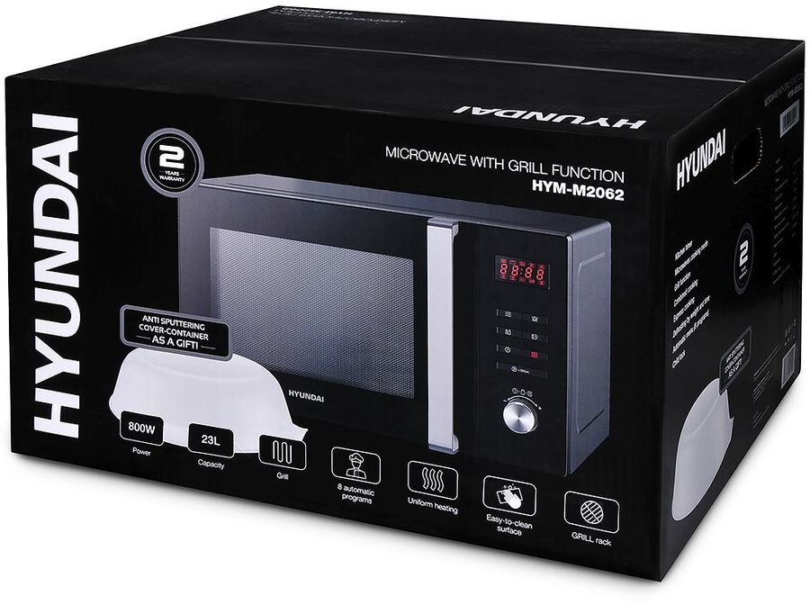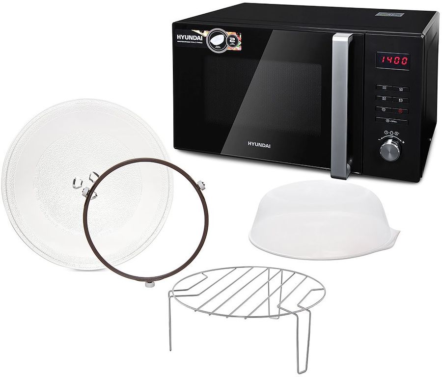 Микроволновая печь Hyundai HYM-M2062 оснащена внутренней камерой объемом 23 л, что удобно для большой семьи. Внутреннее пространство имеет эмалевое покрытие. Память устройства хранит рецепты приготовления блюд. Дверца с окошком открывается при помощи ручки, предусмотрена опция защиты от детей. В комплект включена решетка для гриля и крышка, чтобы накрыть блюдо при приготовлении.