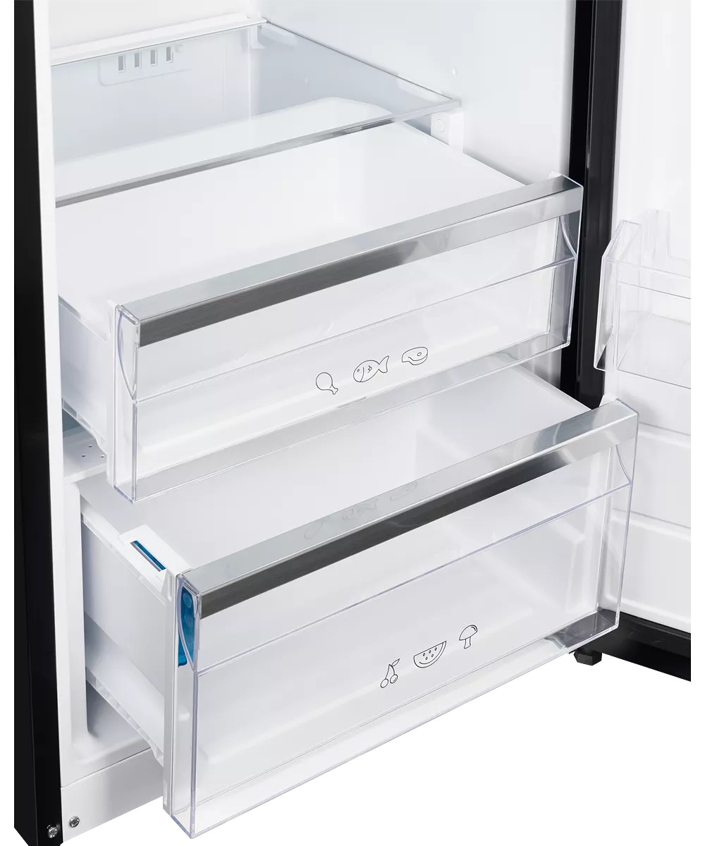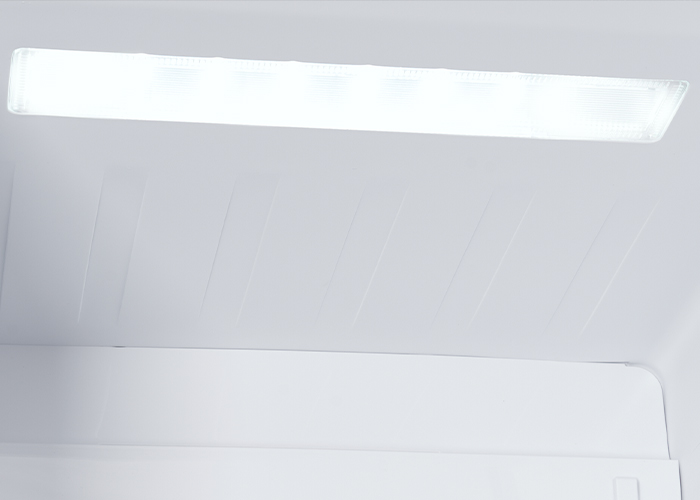 В холодильнике установлены LED светильники с приятным мягким светом, обеспечивающим хороший обзор и не вредным для продуктов, которые боятся света. Свет рассредоточен по всему объему холодильника таким образом, что все продукты будут видны.