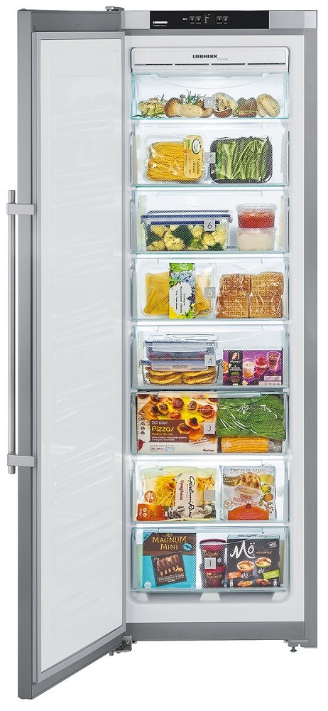 Во всех морозильниках с технологией NoFrost и SmartFrost выдвижные контейнеры и прозрачные полки извлекаются легко и удобно. Это позволяет использовать все преимущества практичной системы VarioSpace, с которой в морозильной камере будет достаточно места для размещения замороженных продуктов большого размера.