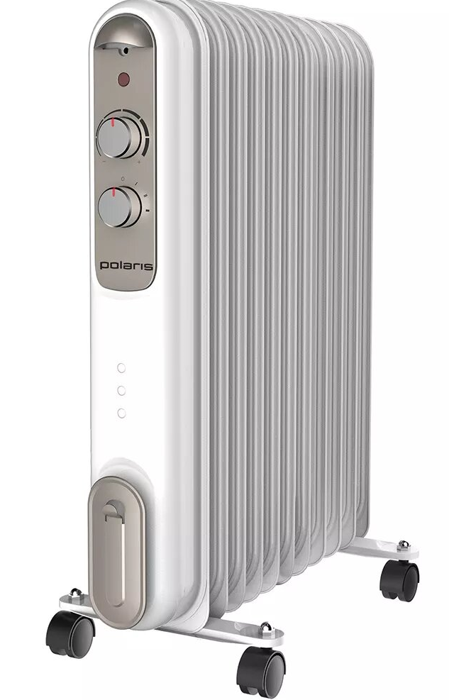 Масляный радиатор POLARIS CR V 1125. Для тех, кому требуется дополнительный обогрев помещений отлично подойдет масляный радиатор POLARIS CR V 1125. В нем имеется 11 секций, три режима мощности — 2500/1500/1000 Вт. После того, как выбран один из трех вариантов мощности, можно еще регулировать и степень нагрева в данном режиме.