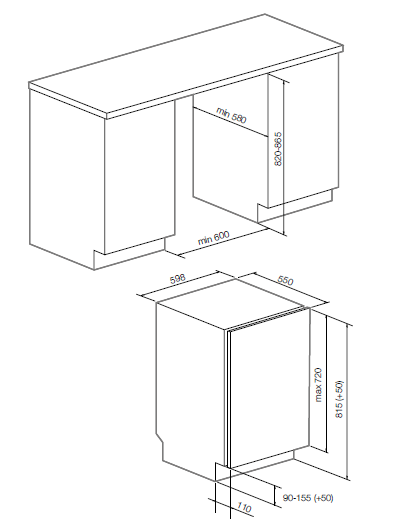 | Размеры ниши (ШхГхВ), см | 60х58х82 - 86.5 |