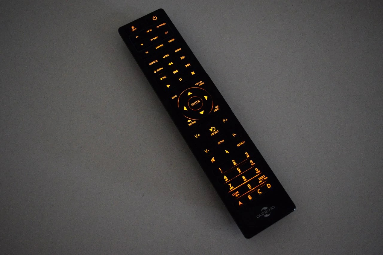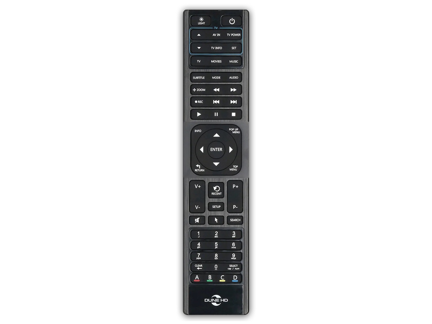 Пульт ИК с подсветкой подходит для любой модели медиаплеера Dune HD. Этот пульт можно настроить для управления любым телевизором, который имеет собственный пульт управления. Вам не придется использовать оба пульта одновременно, достаточно одного пульта Dune HD. Для того, чтобы пульт Dune HD мог управлять Вашим телевизором, необходимо провести простую процедуру программирования пульта.1