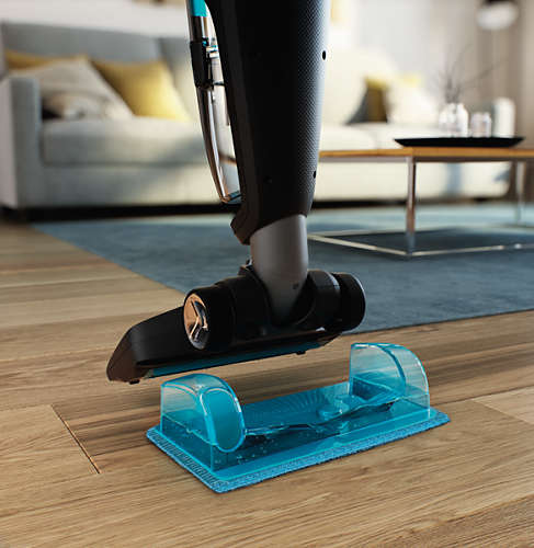 Уникальная система влажной уборки контролирует количество поступающей воды во время всего процесса уборки твердых напольных покрытий.