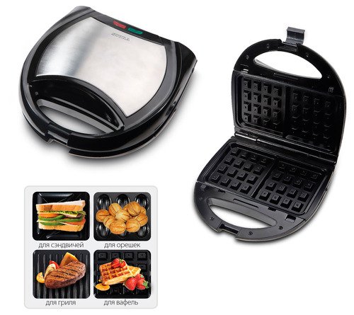 Тип 4 в 1: вафельница, орешница на 12 половинок, сендвичница, гриль