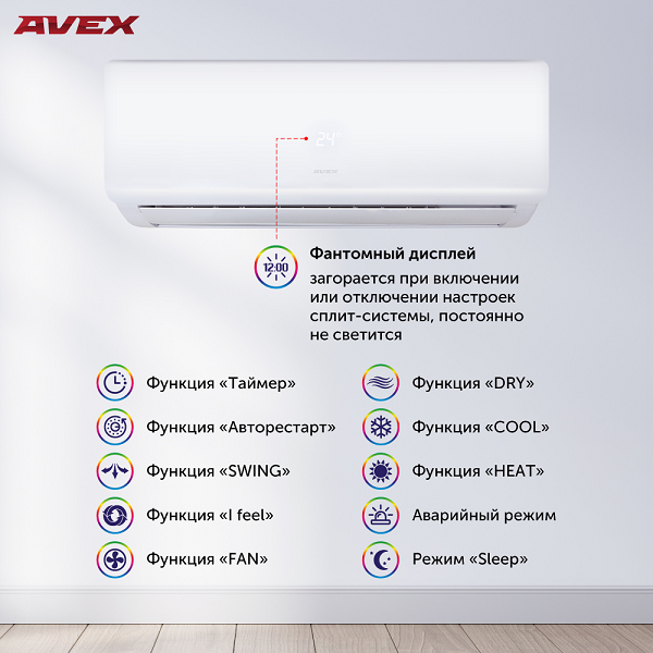 AVEX AC Inverter тихо работает и оснащен большим набором функций: