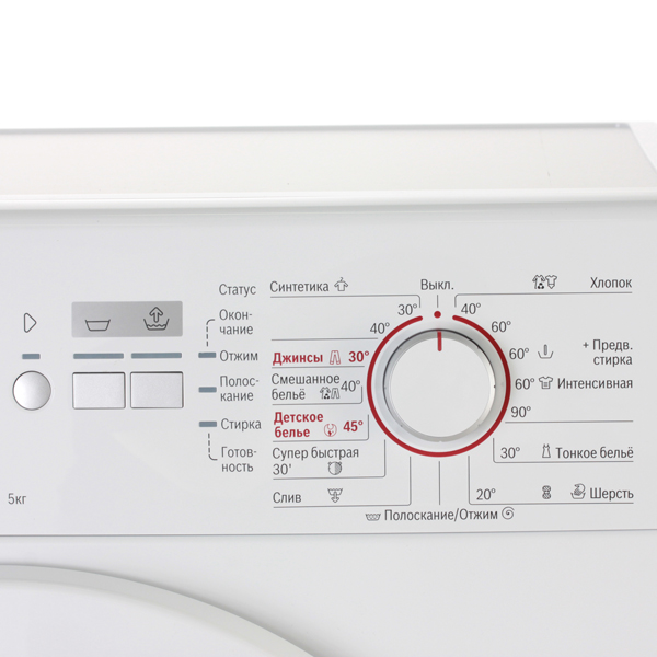 - Основные программы: Отжим, Смешанное белье, Слив, Джинсы, Детская одежда, Детская одежда,