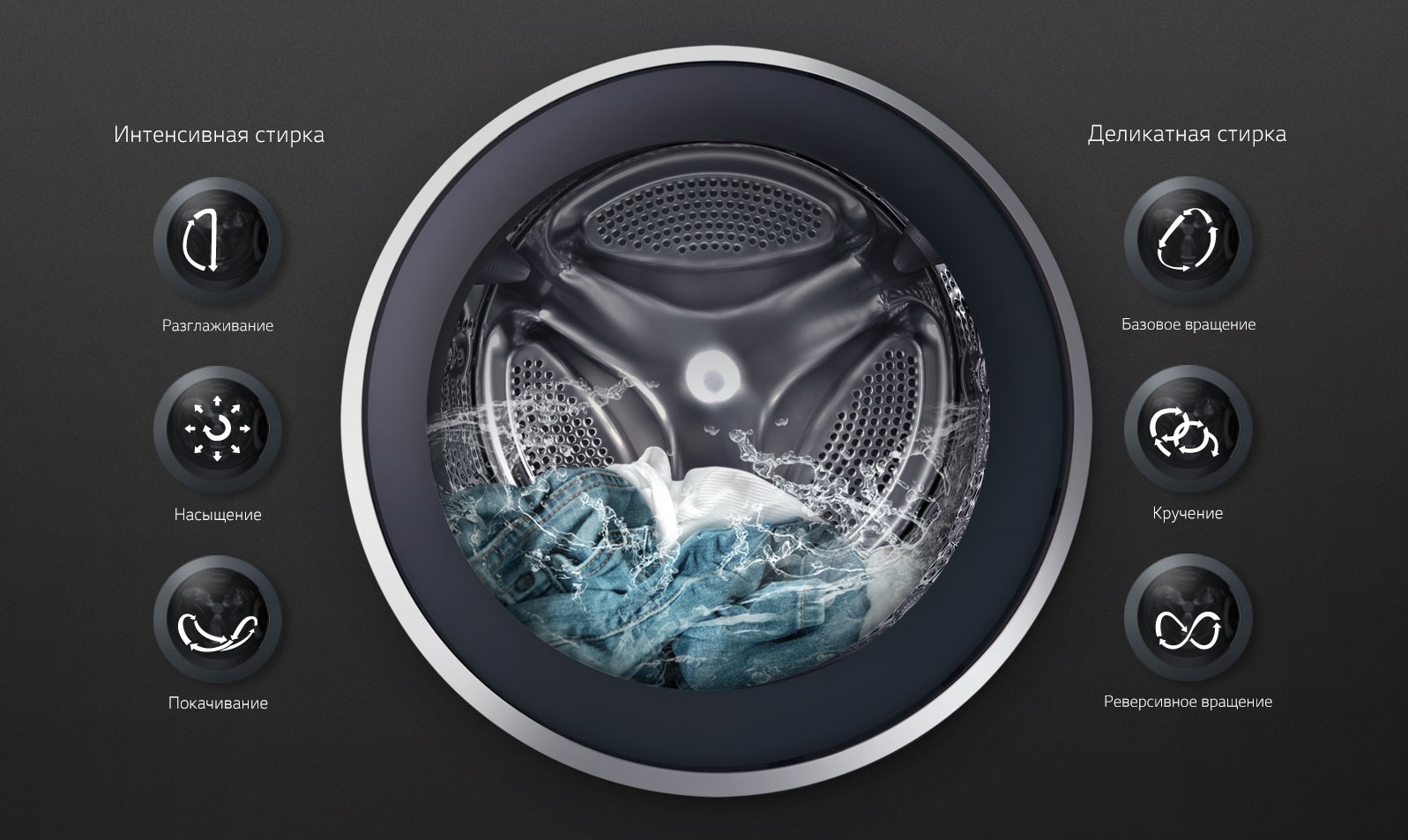 Дополнительные функции [Другие функции и особенности] | Функция пара SpaSteam, 6 движений заботы, Мобильная диагностика Smart Diagnosis, Инверторный мотор с прямым приводом |