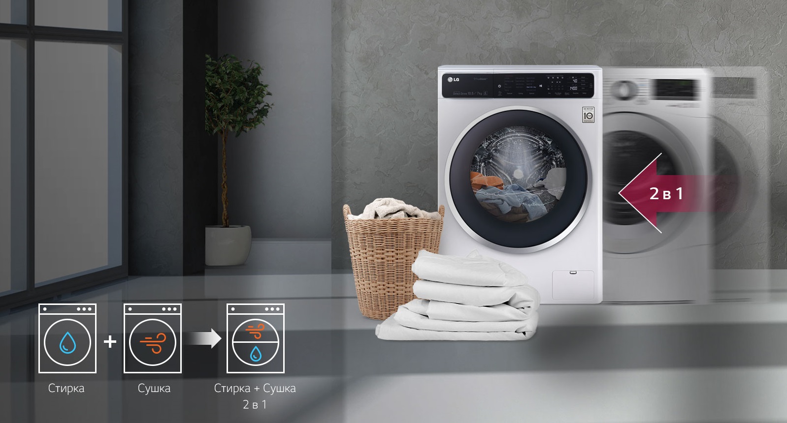 Стиральная машина с функцией сушки экономит пространство, не нужно использовать специальные устройства для сушки белья, занимающие много места.