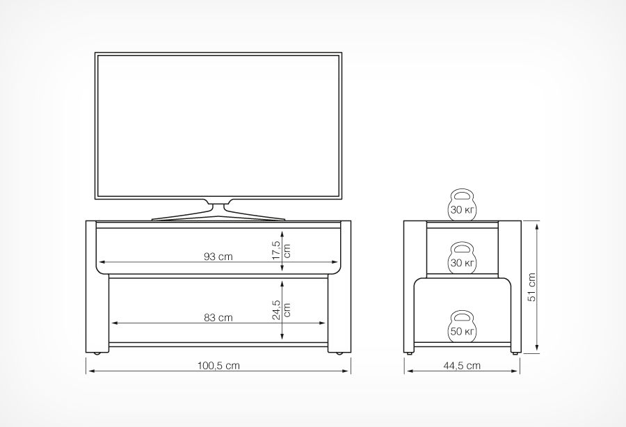 Габариты: 100.5х50.8х44.5 см (ШхВхГ)