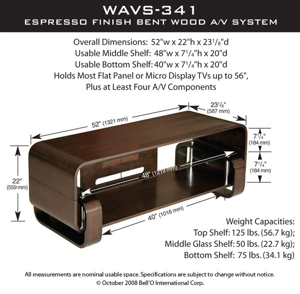 Тумба Bello WAVS-341 позволит легко разместить телевизор диагональю до 56 дюймов и 4 аудио-видео компонента.