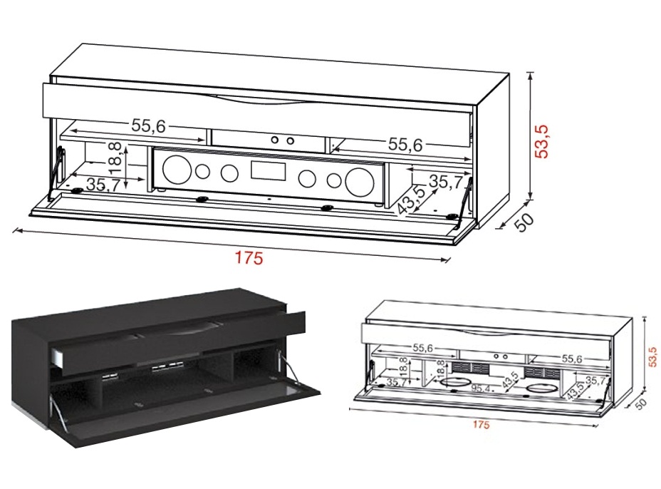 Дополнительно | длинная стеклянная белая тумба под большие телевизоры (до 70 кг) с плавно откидывающейся дверкой и выдвижным ящиком |