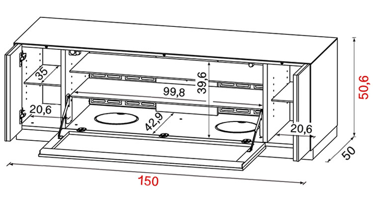 Дополнительно | длинная стеклянная тумба под большие телевизоры (до 60кг) с тремя плавно откидывающимися дверками |