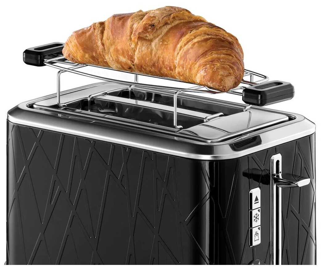 Специально для маленьких тостов есть функция экстра-подъема – вы не обожжете руки, вынимая готовый продукт. Все крошки собираются в специальном поддоне, который легко извлекается из корпуса. Если вы хотите подогреть остывшие тосты, не поджаривая их, для этого тоже есть специальная функция. С ее помощью можно также освежить зачерствевшие ломтики хлеба.