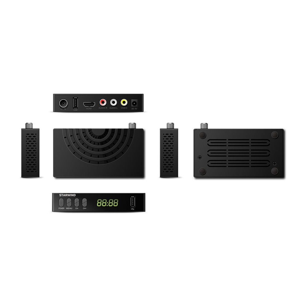 Цифровой TV-тюнер Starwind CT-220 - наслаждайтесь просмотром любимых телепередач! Устройство поддерживает стандарт DVB-T2 - у вас будет возможность смотреть цифровое телевидение с умопомрачительной картинкой. USB вход даст возможность воспроизводить файлы с флешки, жесткого диска, планшетного компьютера или смартфона. Кроме того, вы сможете записывать видео на USB-накопитель.