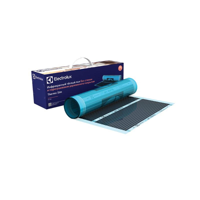 Electrolux Thermo Slim – это инновационная сверхтонкая инфракрасная пленка. Теплые полы этой серии подходят под любые виды напольного покрытия: линолеум, ламинат, ковролин, паркет и деревянная доска. Монтаж происходит «на сухую», то есть без стяжки или клея. Равномерно нагревает пол, так как тепло исходит сразу от всей поверхности пленки. Наиболее безвредна для человеческого здоровья, поскольку инфракрасное излучение совершенно безопасно.