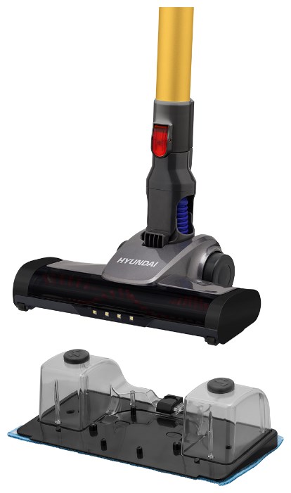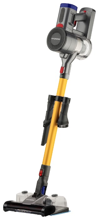 Вертикальный беспроводной пылесос 3 в 1 Hyundai H-VCH12 - ручной пылесос, вертикальный и полотер для влажной уборки. Отсоединяемый ручной пылесос отлично справится с уборкой салона автомобиля и предметов интерьера. Аккумулятор Li-Ion позволяет пылесосу работать до 40 минут без подзарядки. Турбощетка поможет справиться с уборкой волос и шерсти домашних животных. Съемные резервуары для воды позволяют использовать пылесос для мытья пола. Вода постепенно подается на фибра-ткань установленную снизу прибора. Ткань для мытья пола входит в комплект. Моющийся HEPA-фильтр удерживает до 99% пыли для защиты мотора и поддержания чистого воздуха в помещении. Щетка оборудована LED подсветкой для уборки темных мест под мебелью. Надежный и долговечный стальной корпус циклонного фильтра. Данная модель не требует дополнительных расходных материалов. Контейнер легко очищается и промывается водой. Также, в комплекте предусмотрено 2 насадки, одна из которых оснащена мягкими ворсинками для очистки мебели, а вторая исполнена в специальной узкой форме, для удаления пыли из труднодоступных мест, мебельных стыков и угловых зон.