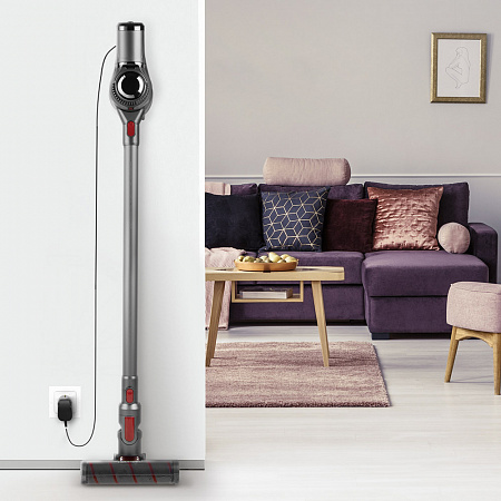 В комплект UR363 входит кронштейн для вертикального крепления на стене. В этом положении пылесос удобно заряжать и хранить.