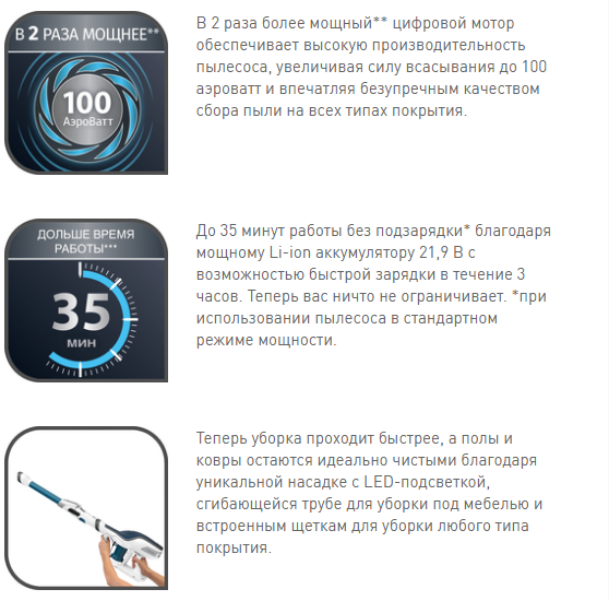| Пылесос вертикального типа | да |