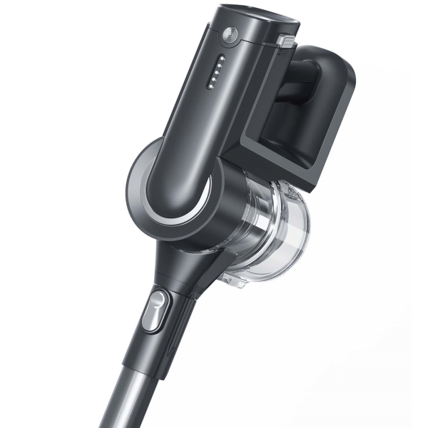 В стандартную насадку установлен независимый мотор, вращающий щётку, которая эффективно собирает грязь и шерсть. Съёмная батарея ёмкостью в 2500mAh позволяет использовать пылесос в течение целого часа непрерывной работы. Этого хватает чуть менее, чем на 400 квадратных метров поверхности. Уровень заряда отображается на световом индикаторе на поверхности прибора.