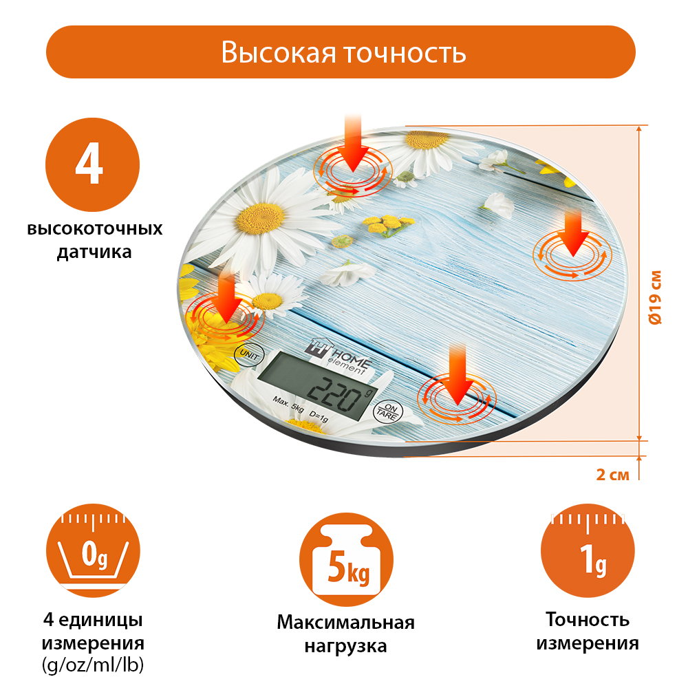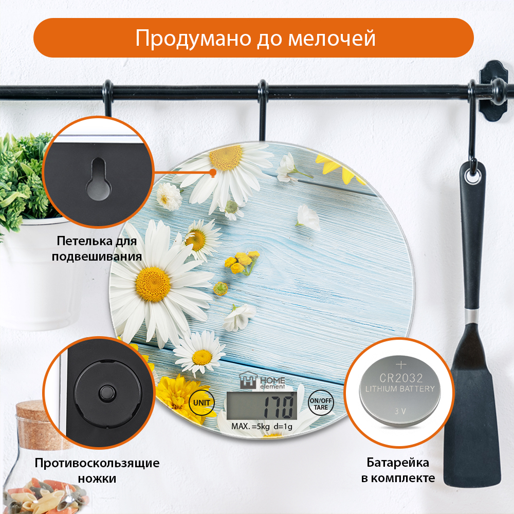 Весы электронные для кухни Home-Element HE-SC933 Летние цветы